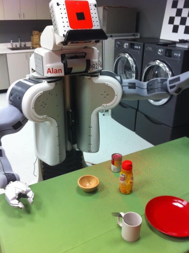 Willow Garage: This prototype places the sensors about 125 mm above the head. While this may introduce vibration while moving, it allows the sensors to view more of the ground directly around the robot (the body and shoulders partially block the view of the built-in cameras).